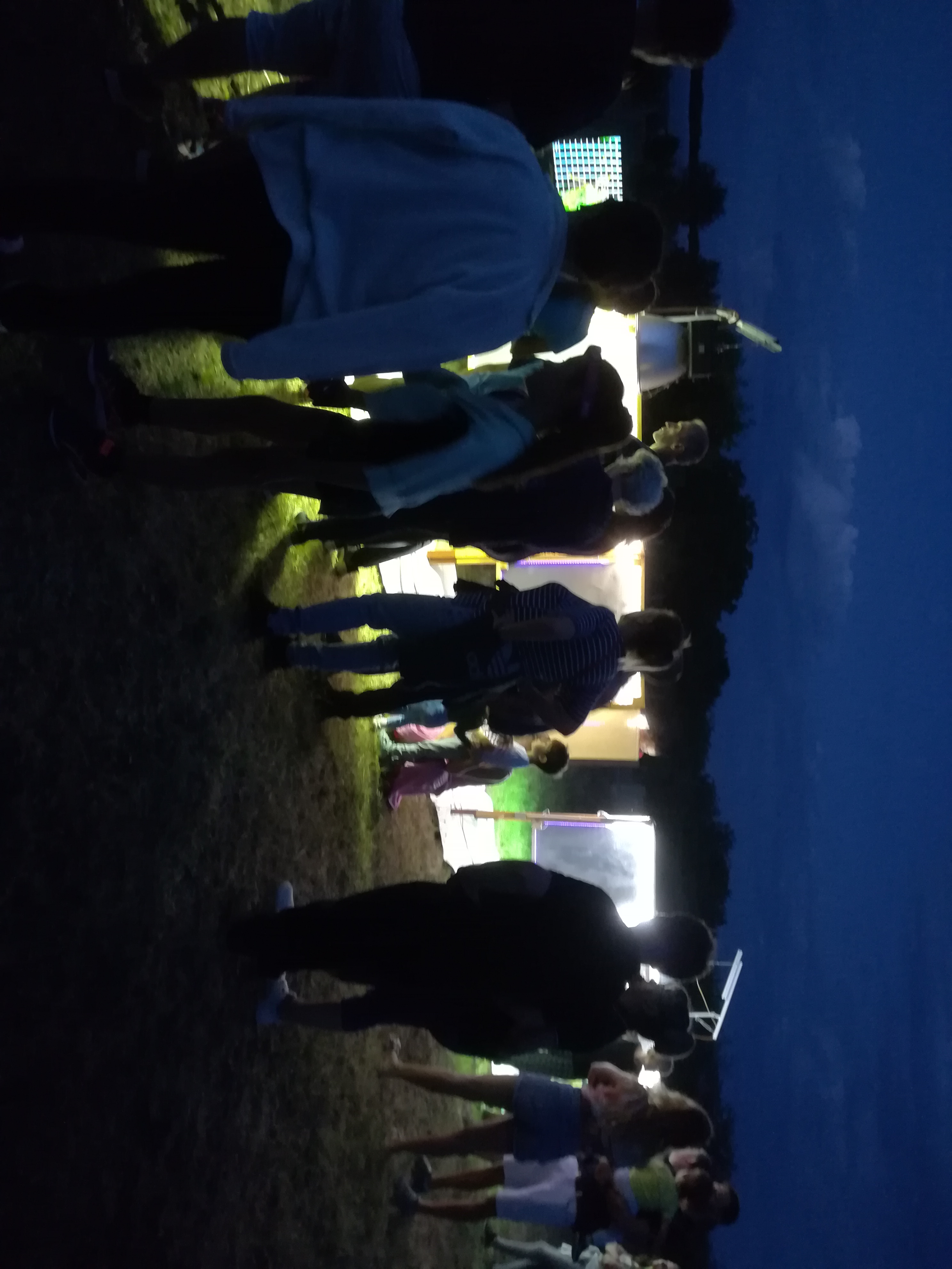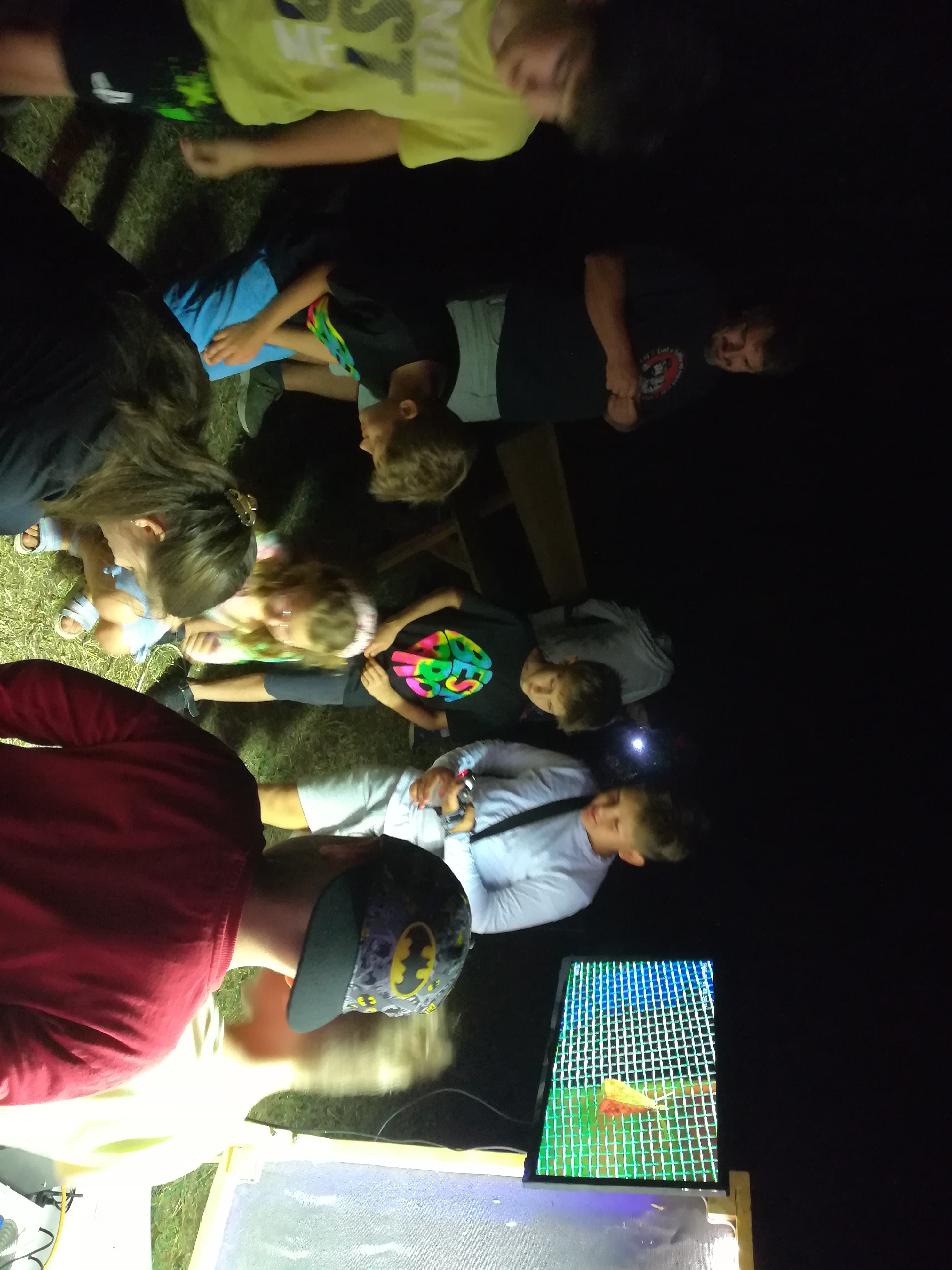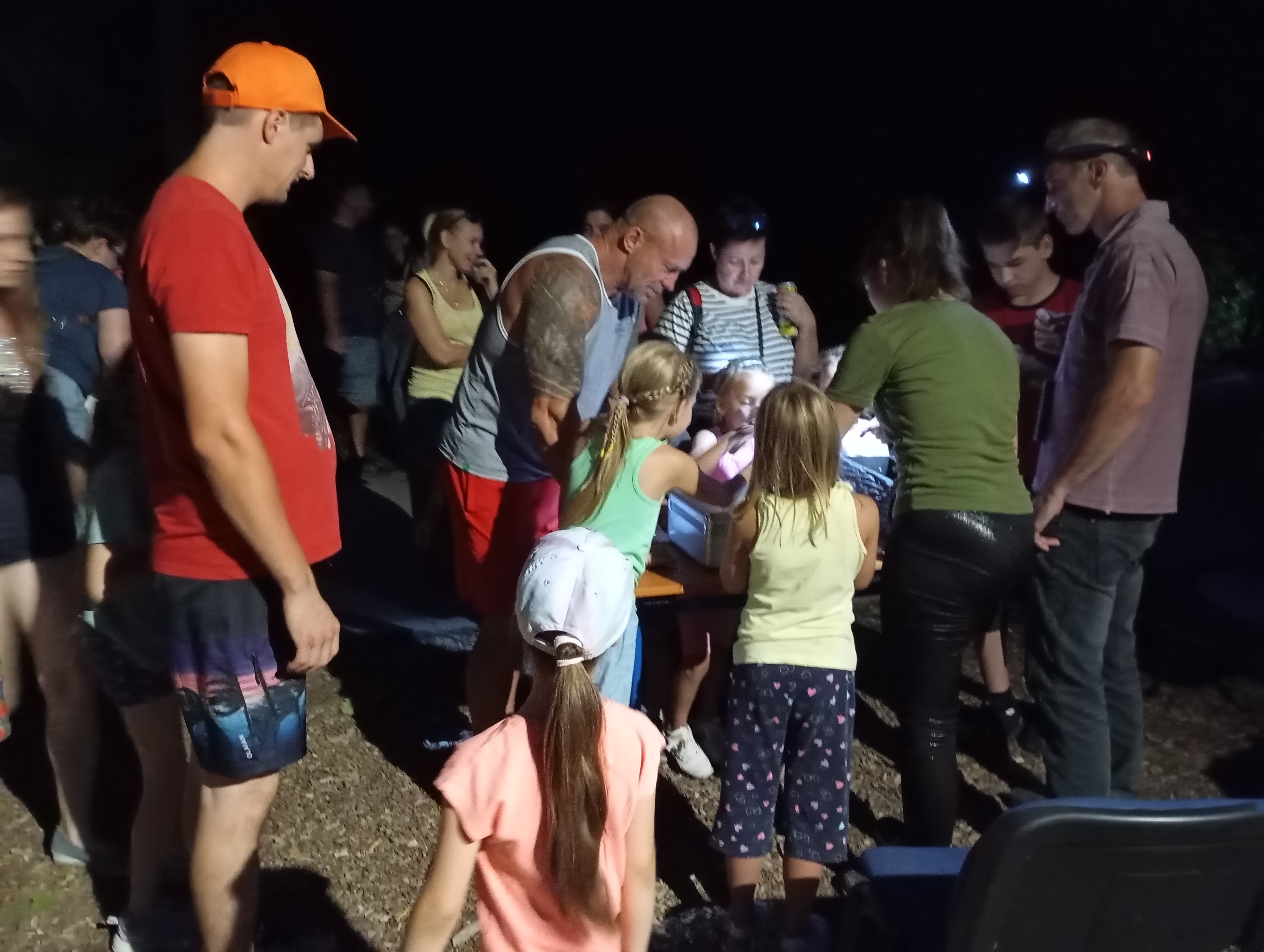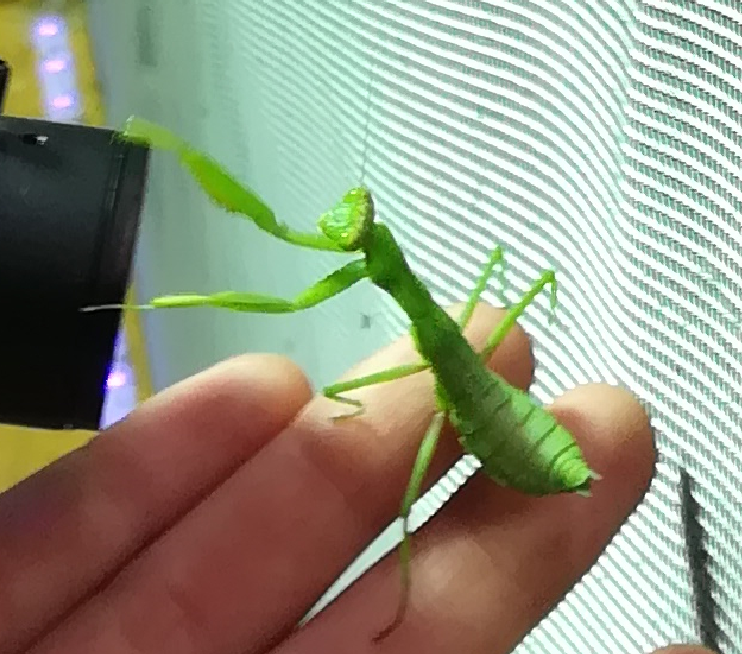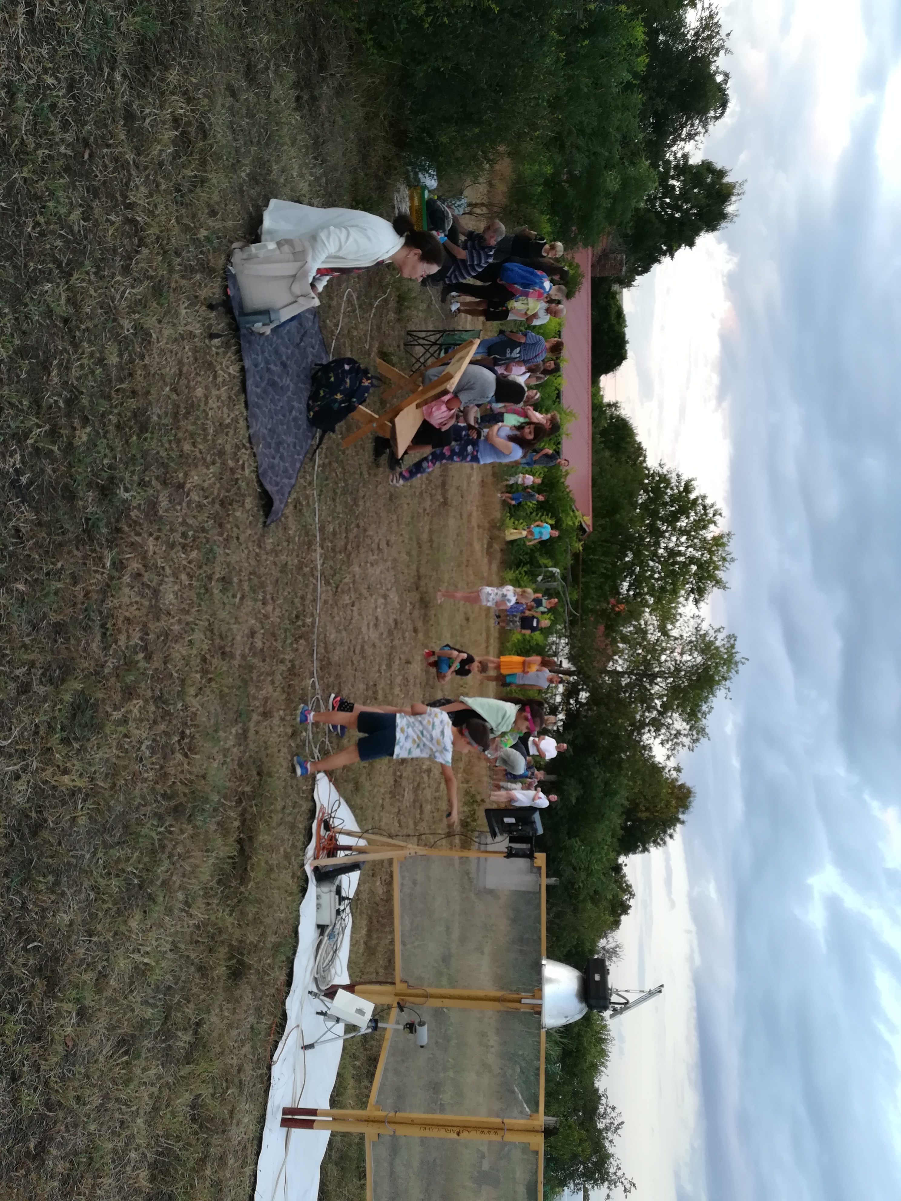 A gyerekek kimondottan élvezték a programot, mert már a sötétedés előtt ugráltak, futottak a fűben a pattogó sáskák, szöcskék után. Meglepően sok fiatal sisakos sáska (Acrida ungarica) volt jelen a réti- és olaszsáskákon (Calliptamus italicus) kívül a temető közepén található rövid fűvel borított tisztáson. A középpontba a szintén fiatal óriás ázsiai imádkozó sáska (Hierodula tenuidentata) került a látogatók nagy örömére. Ezen kívül közösen „gyönyörködhettünk” a zöld lombszöcske (Tettigonia viridissima) brutálisan nagy rágószájszervében, melyet nagyban, a monitor képén keresztül is meg lehetett figyelni. Voltak olyan bátor jelentkezők, akik meg merték fogni a lombszöcskét, sőt még a karjukra vagy a pólójukra is felengedték. Az este folyamán egy nőstény diófacincér (Aegosoma scabricorne) szintén tiszteletét tette a lámpafénynél. Nagy megdöbbenésünkre egy dunavirág (Ephoron virgo) is jött a fényre, bár sajnos szemtanúi voltunk röpke életének végső momentumainak, hiszen hasonlóan a tiszavirághoz, kifejlett állapotban nagyon rövid ideig élnek.