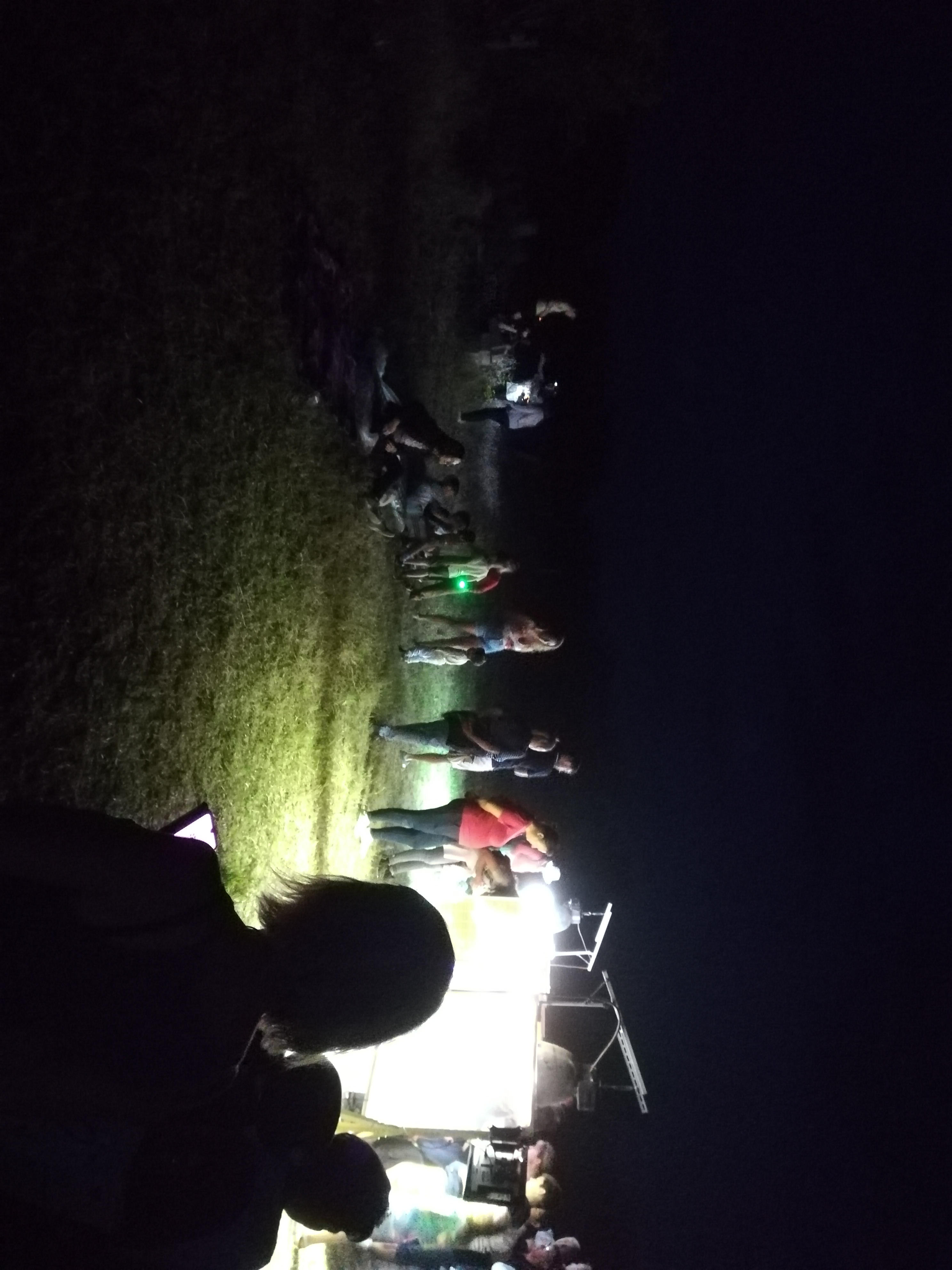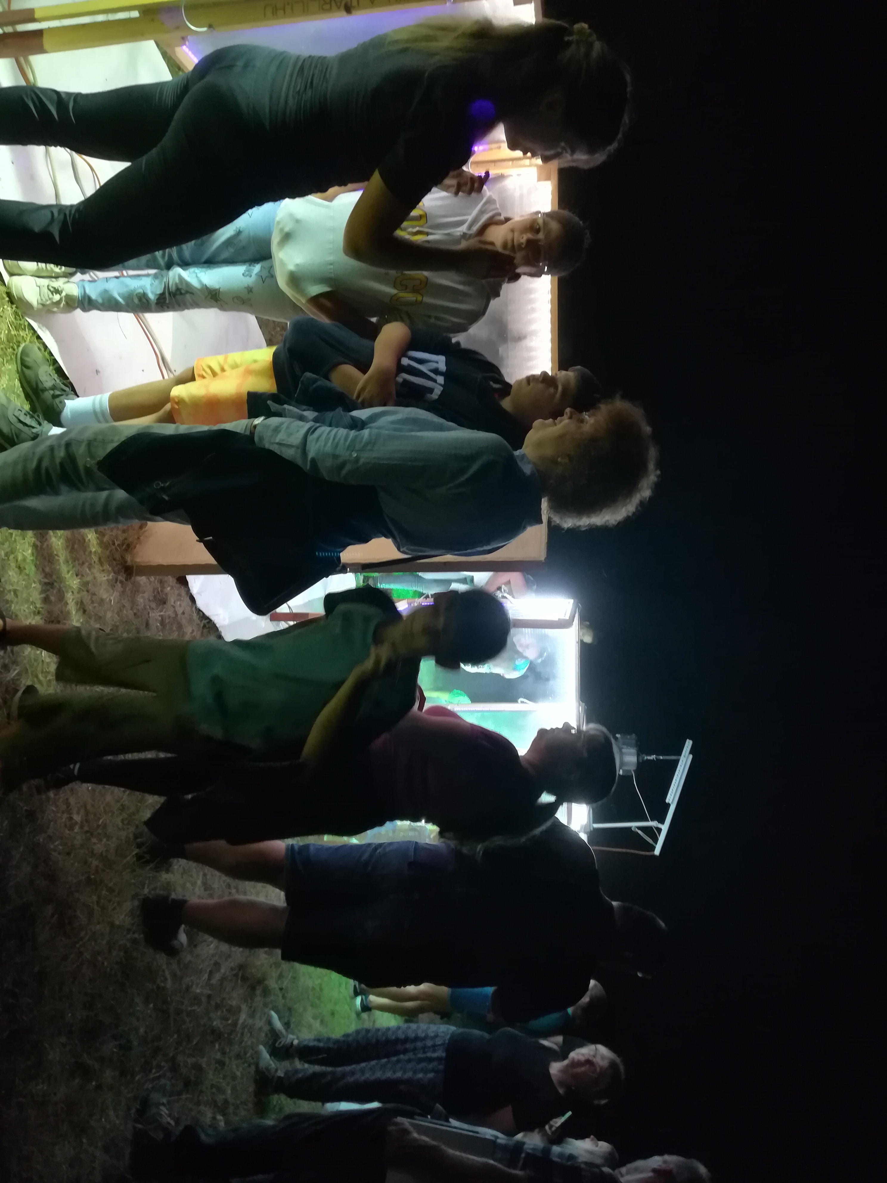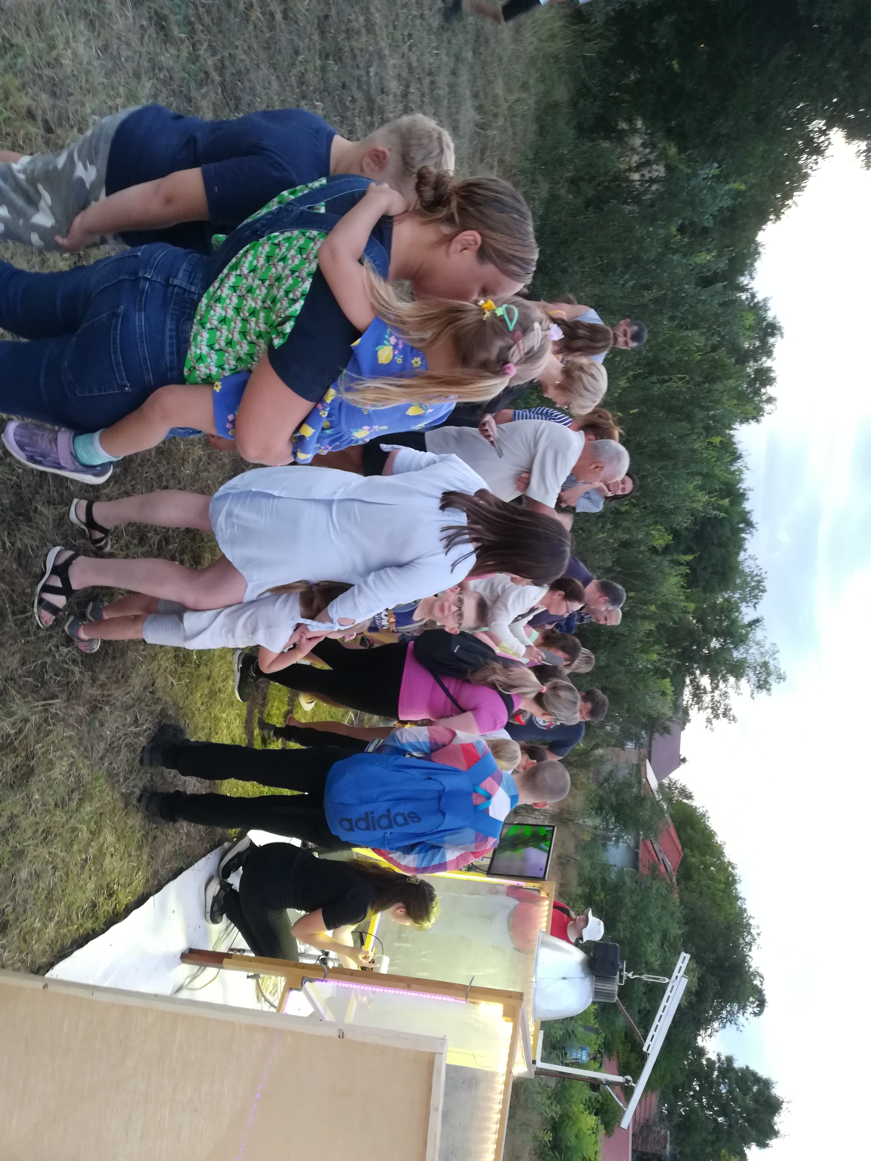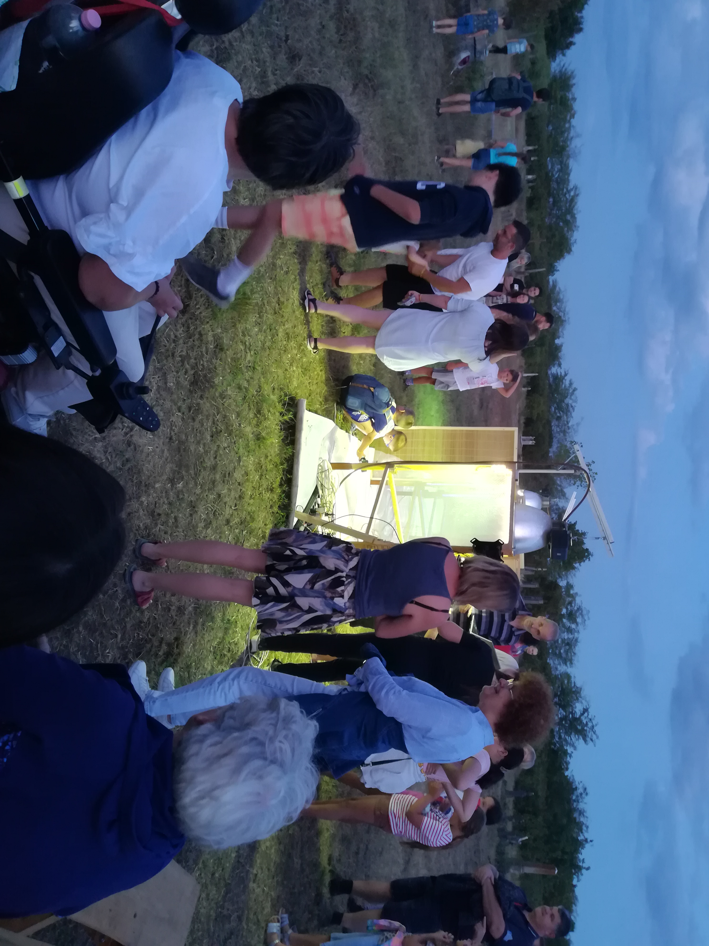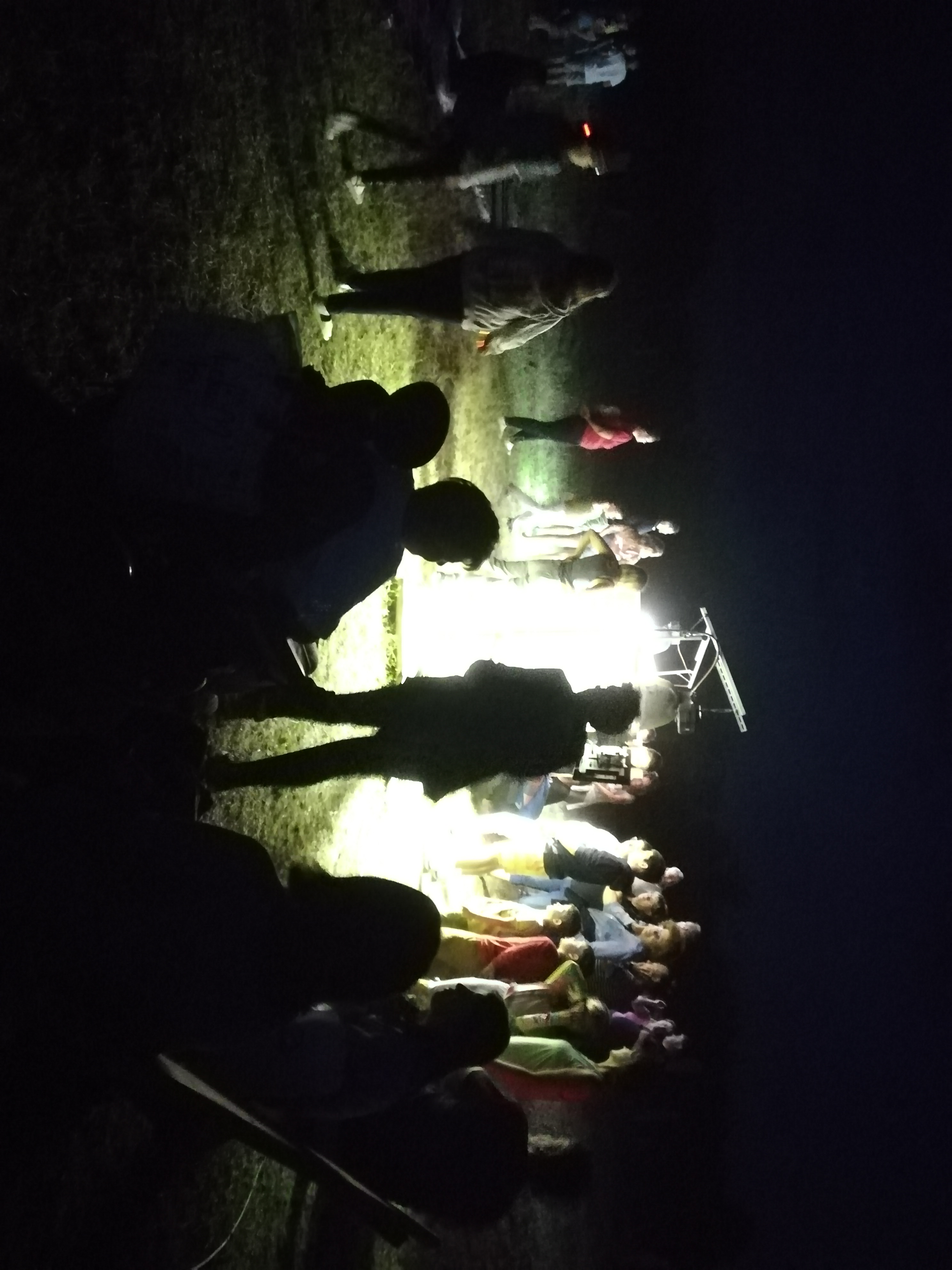 A gyerekek kimondottan élvezték a programot, mert már a sötétedés előtt ugráltak, futottak a fűben a pattogó sáskák, szöcskék után. Meglepően sok fiatal sisakos sáska (Acrida ungarica) volt jelen a réti- és olaszsáskákon (Calliptamus italicus) kívül a temető közepén található rövid fűvel borított tisztáson. A középpontba a szintén fiatal óriás ázsiai imádkozó sáska (Hierodula tenuidentata) került a látogatók nagy örömére. Ezen kívül közösen „gyönyörködhettünk” a zöld lombszöcske (Tettigonia viridissima) brutálisan nagy rágószájszervében, melyet nagyban, a monitor képén keresztül is meg lehetett figyelni. Voltak olyan bátor jelentkezők, akik meg merték fogni a lombszöcskét, sőt még a karjukra vagy a pólójukra is felengedték. Az este folyamán egy nőstény diófacincér (Aegosoma scabricorne) szintén tiszteletét tette a lámpafénynél. Nagy megdöbbenésünkre egy dunavirág (Ephoron virgo) is jött a fényre, bár sajnos szemtanúi voltunk röpke életének végső momentumainak, hiszen hasonlóan a tiszavirághoz, kifejlett állapotban nagyon rövid ideig élnek.