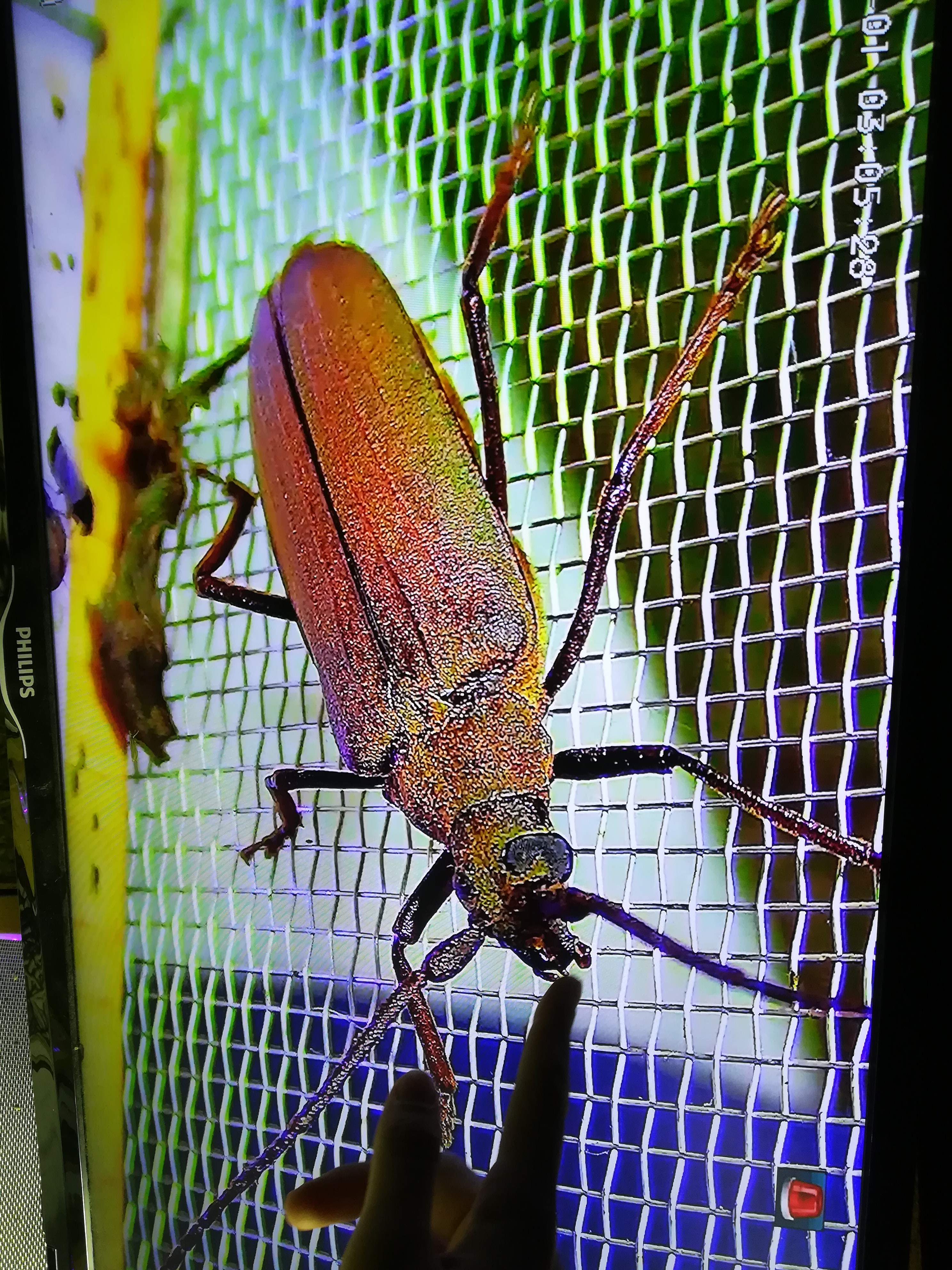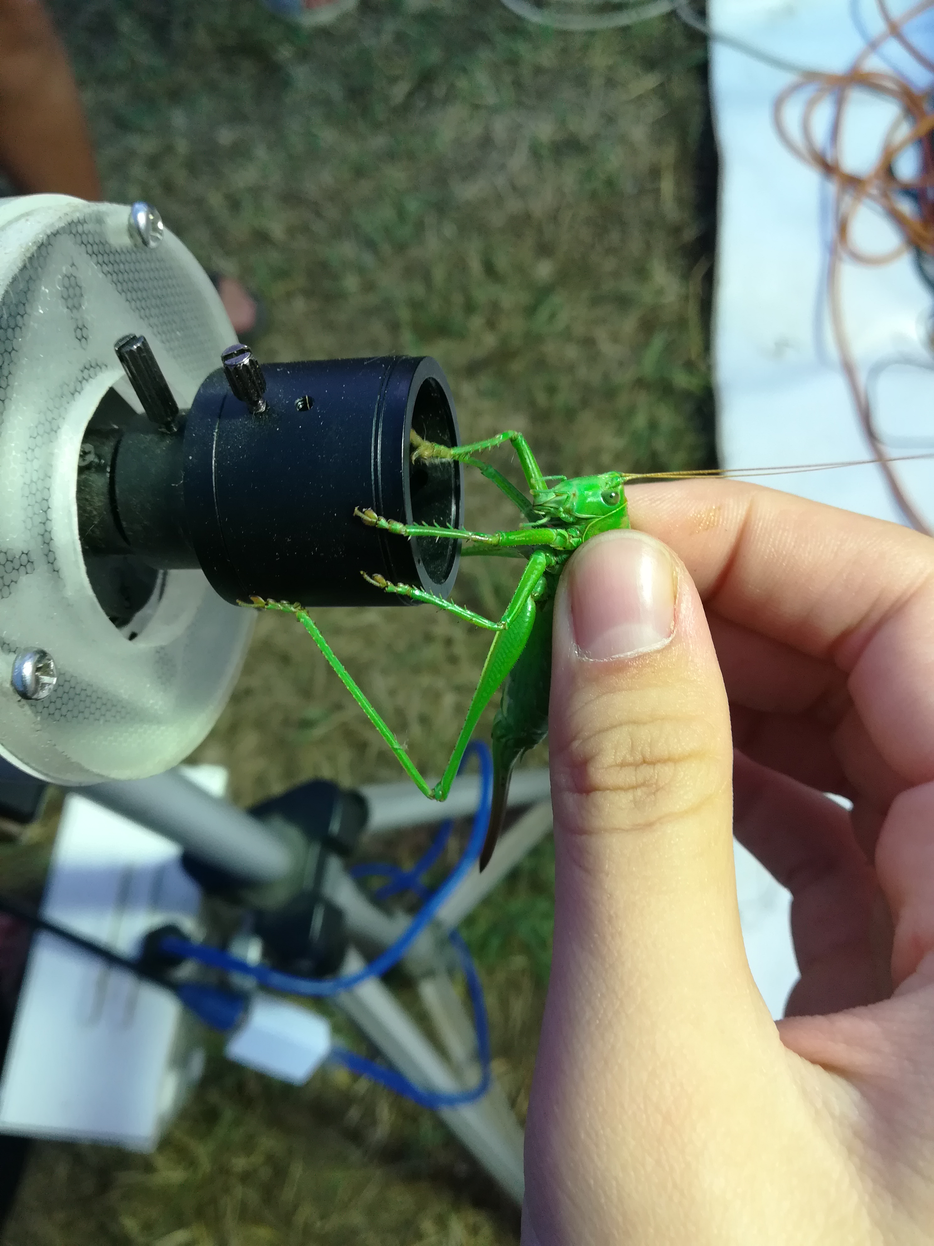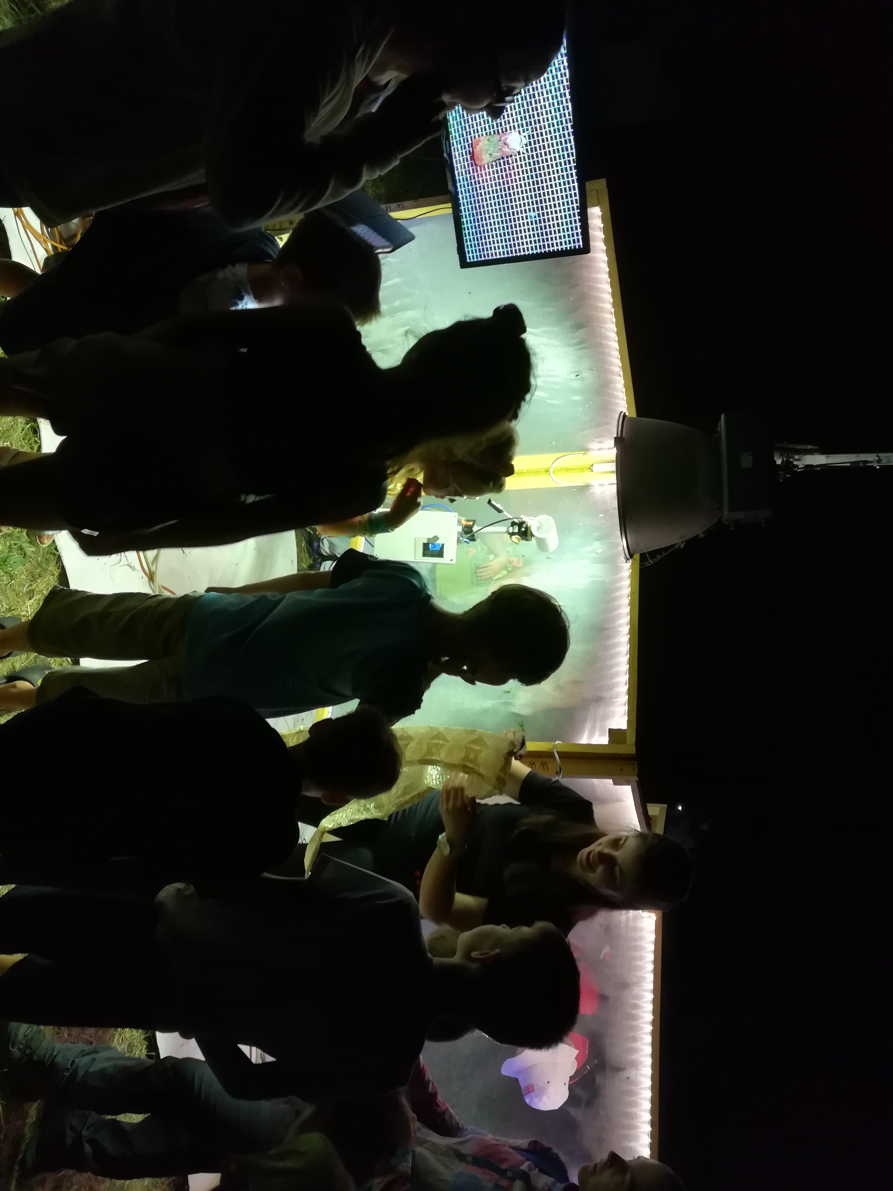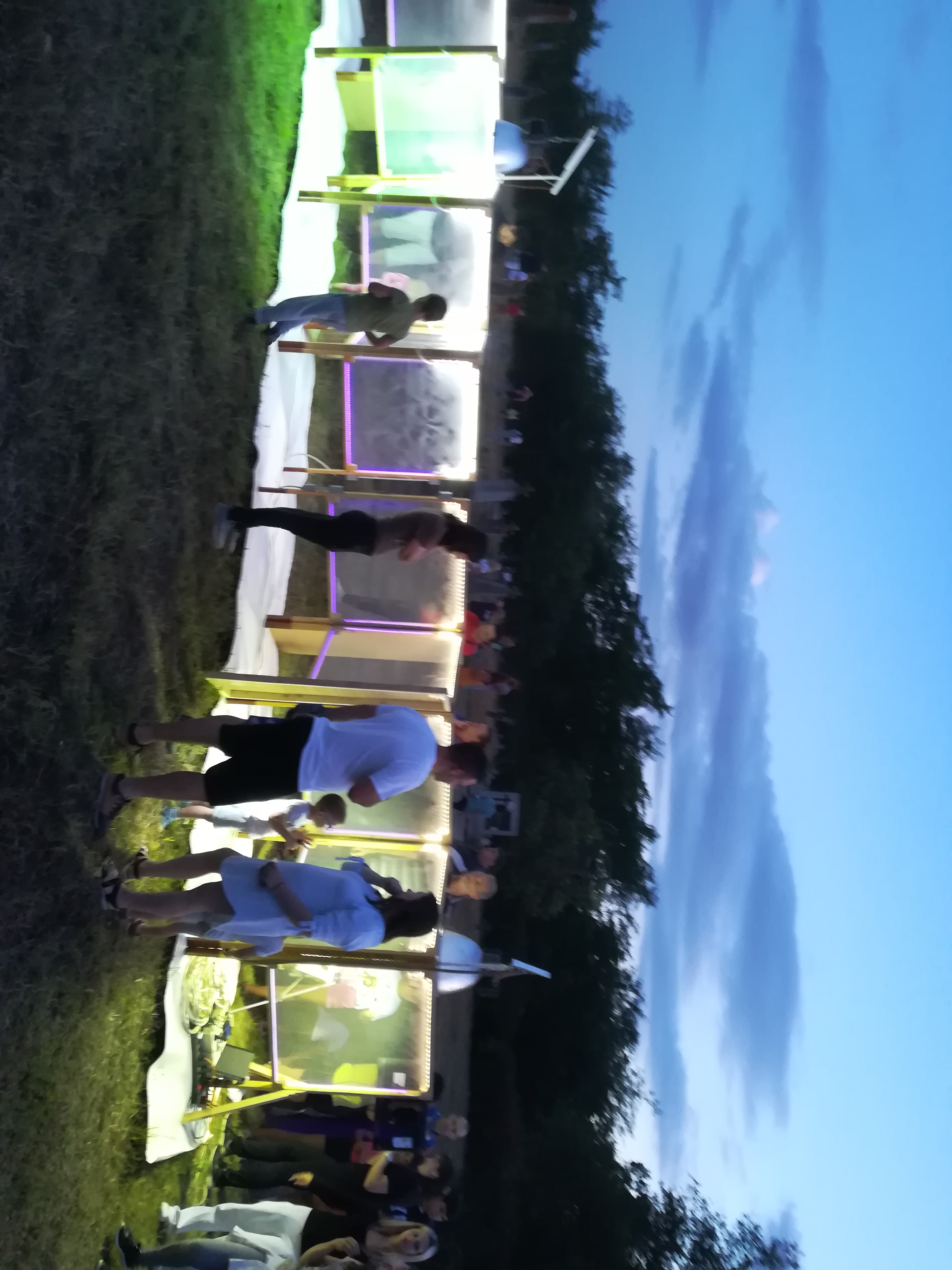 A gyerekek kimondottan élvezték a programot, mert már a sötétedés előtt ugráltak, futottak a fűben a pattogó sáskák, szöcskék után. Meglepően sok fiatal sisakos sáska (Acrida ungarica) volt jelen a réti- és olaszsáskákon (Calliptamus italicus) kívül a temető közepén található rövid fűvel borított tisztáson. A középpontba a szintén fiatal óriás ázsiai imádkozó sáska (Hierodula tenuidentata) került a látogatók nagy örömére. Ezen kívül közösen „gyönyörködhettünk” a zöld lombszöcske (Tettigonia viridissima) brutálisan nagy rágószájszervében, melyet nagyban, a monitor képén keresztül is meg lehetett figyelni. Voltak olyan bátor jelentkezők, akik meg merték fogni a lombszöcskét, sőt még a karjukra vagy a pólójukra is felengedték. Az este folyamán egy nőstény diófacincér (Aegosoma scabricorne) szintén tiszteletét tette a lámpafénynél. Nagy megdöbbenésünkre egy dunavirág (Ephoron virgo) is jött a fényre, bár sajnos szemtanúi voltunk röpke életének végső momentumainak, hiszen hasonlóan a tiszavirághoz, kifejlett állapotban nagyon rövid ideig élnek.